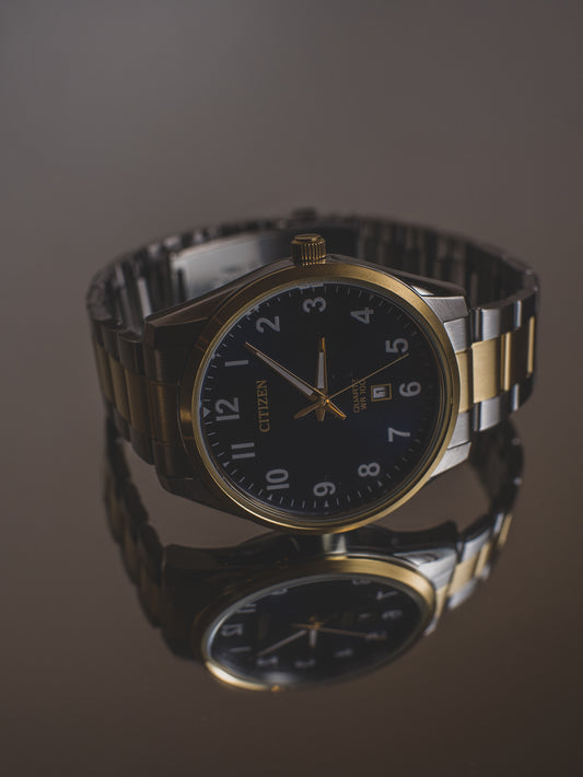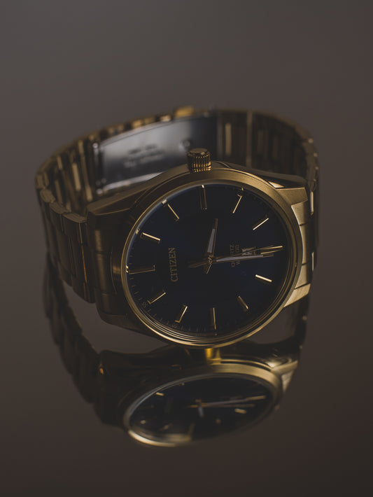Reloj Citizen de cuarzo con esfera azul y tono dorado para hombre BI1032-58L