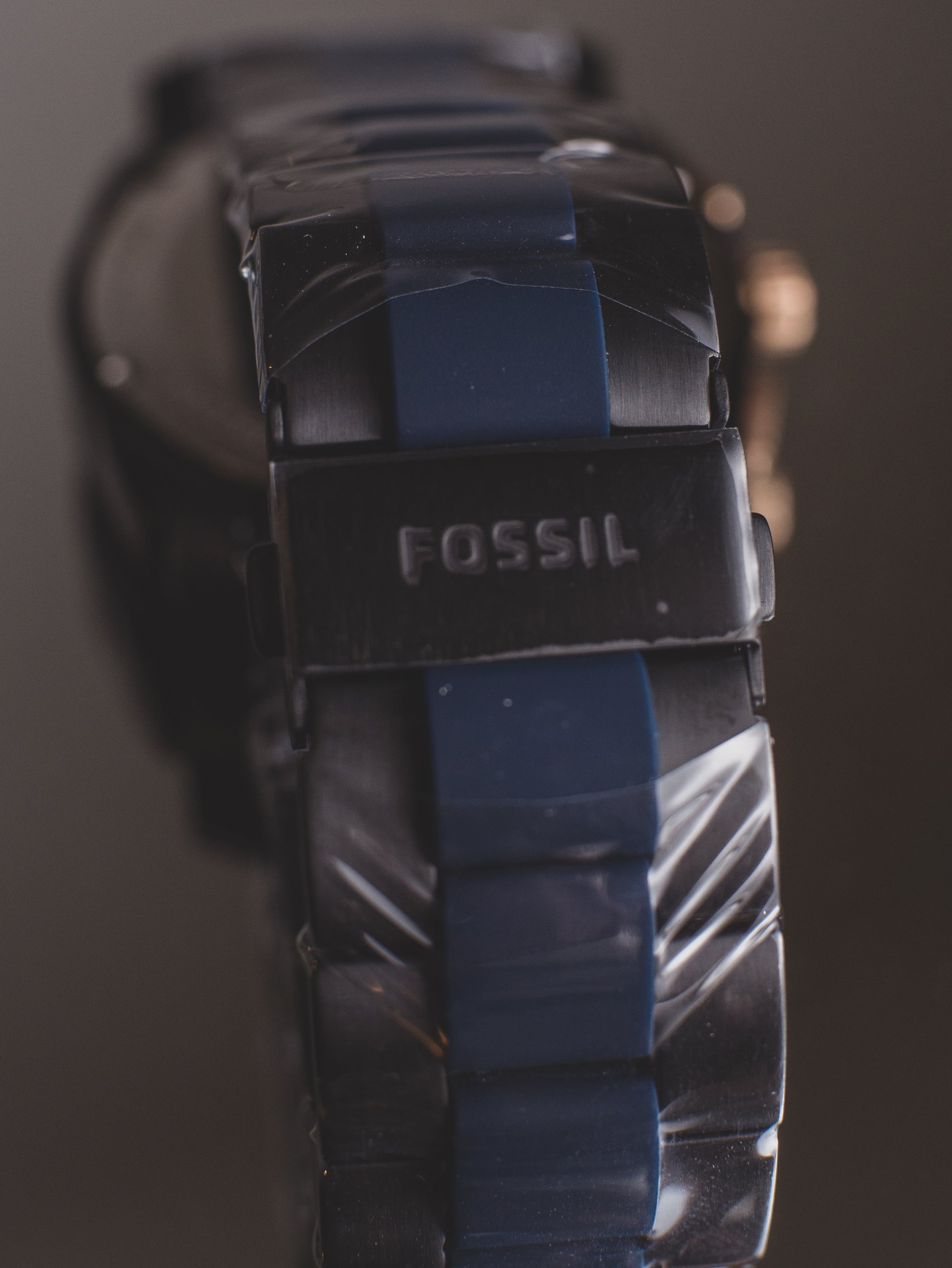 Reloj Fossil analógico para hombre, esfera negra, acero inoxidable, correa multicolor, FS5164