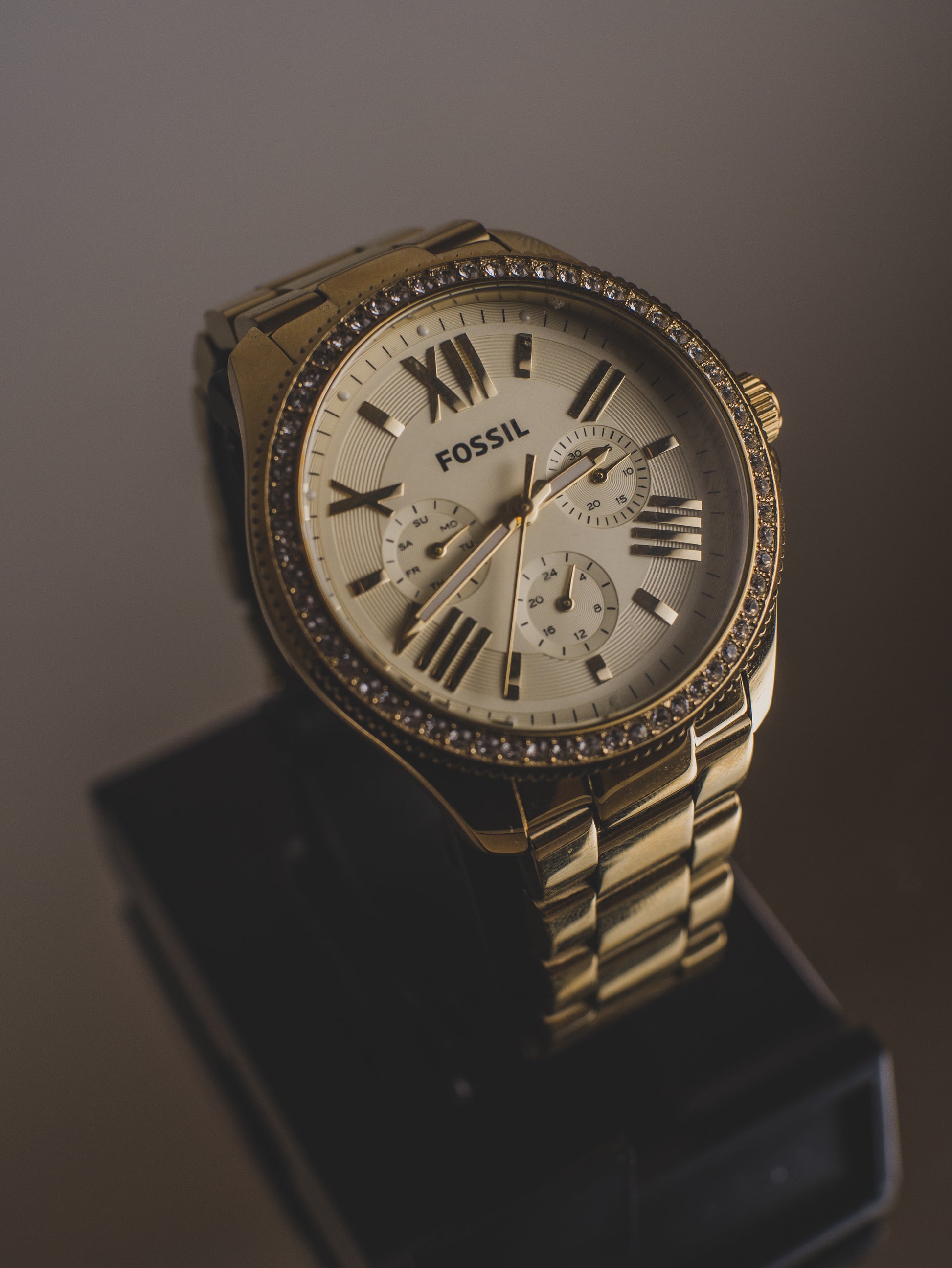 Caja y pulsera de acero inoxidable en tono oro rosa. Bisel fijo en tono oro rosa engastado con cristales. Esfera rosa con manecillas luminosas e índices alternos y marcadores de hora con números romanos. Marcadores de minutos alrededor del borde exterior. Tipo de esfera: analógica. Manecillas y marcadores luminiscentes en tono oro rosa. Tres subesferas multifunción que muestran: 24 horas, fecha y día de la semana. Movimiento de cuarzo. Cristal mineral resistente a los arañazos. Tirar/empujar la corona. Parte trasera sólida. Diámetro de la caja: 40 mm. Grosor de la caja: 12 mm. Forma de caja redonda. Cierre desplegable. Resistente al agua a 100 metros / 330 pies. Funciones: hora, minuto, segundo, calendario, GMT. Vestido estilo reloj. Fossil Cecile Multifunción Rose Dial Rose Gold-tone Acero inoxidable Ladies Watch AM4483.