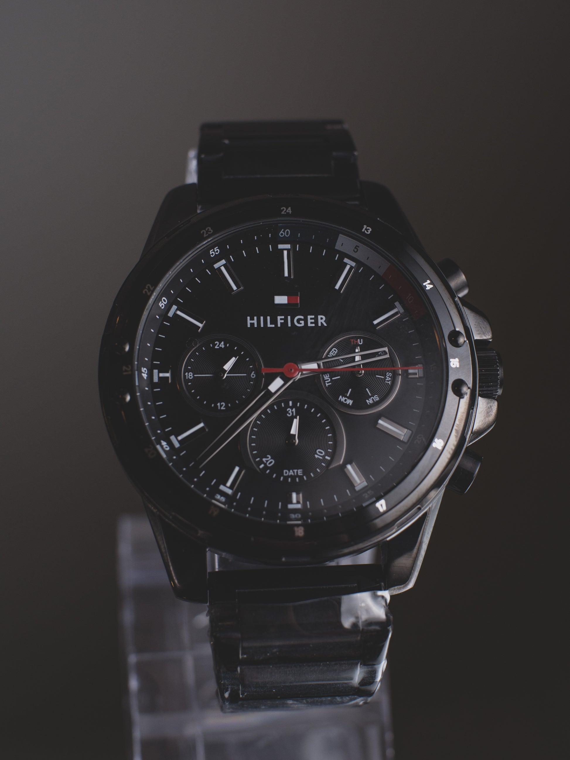 Movimiento multifunciónGrosor de la caja de 10,7mm / Diámetro de la caja: 45 mmEsfera negraPulsera de acero inoxidable con chapado iónico negro5 ATM de resistencia al agua Se puede utilizar en la ducha o para nadar, pero no para bucear en aguas profundas.